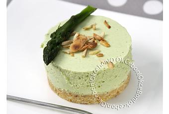 Au moment de servir décorer avec les pointes d'asperges et parsemer les cheesecakes d'amandes concassées.