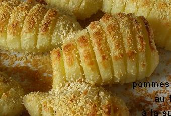Préchauffer le four à 225°C. Epluchez les pommes de terre, coupez partiellement en lamelles de 3 mm d’épaisseur, (ça veut dire qu’on s’arrête juste avant de faire des rondelles !) la base doit rester attachée.