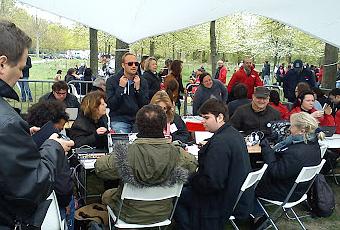 Tout avait commencé difficilement, j'étais dans l'impossibilité de me lever malgré mon réveil calé sur 9h30. La fatigue accumulé, l'excès de limonade et l'abondance de boulot sans doute. Ma carcasse debout je me suis quand même grouillé, le rendez-vous était chez Gildan le plus reporter des blogueur à 11h pour l'apéro et j'habite à 30mn de chez lui, j'étais dans les temps en partant à moins 5. Pour les calés en maths ne cherchez pas, ça marche le dimanche. Le RDV était cool puisqu'il était juste à coté de l'esplanade, Gildan avait choisi une maison au hasard et réussi à séquestrer des pauvres gens pour squatter le temps d'un repas, c'était bien joué. Sur place quand je suis arrivé, Intox2007 était déjà en train de vider les bières du frigo, je me suis mis à l'accompagner poliment en attendant Nicolas. Une fois arrivé, et un bon repas digne de chez Top Chef plus tard, nous sommes parti vers le show de Vincennes à pied.