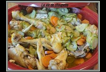 Servir le poulet et les légumes bien chauds sur le couscous.