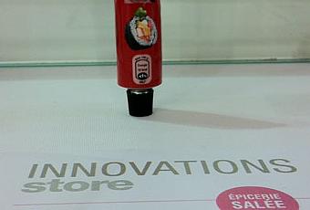 Pour la vente de la moutarde Japonaise, Carrefour reprend un emballage plutôt peu commun en alimentaire. Ne vous inquiétez pas, en mangeant le contenu de cet emballage vous ne mangerez pas de la colle mais un wasabi sans doute tout aussi fort.