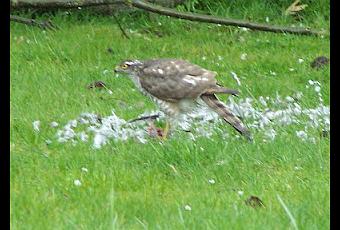 La buse, avec un sans gêne déplorable, un manque d'éducation flagrant, n'a pas trouvé mieux que de tuer une de ces tourterelles, de la plumer en partie et de la déguster dans la pelouse. Cela a fait fuir immédiatement les habitués.