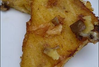 - Faire chauffer du beurre avec un peu d'huile dans une poêle puis y faire dorer les triangles env.6/7 min de chaque côté