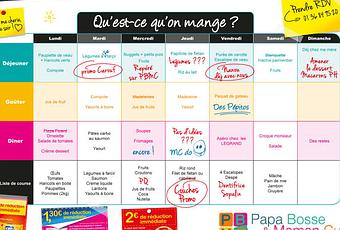 - Ecrivez aux crayons à papier car vous allez faire évoluer vos menus au fil de l’eau. Vous n’êtes pas à l’abri d’un diner de dernière minute avec les copains, d’un rab, d’un soir où vous n’aurez pas résisté à aller au Mac Do, d’une envie de NE PAS cuisiner…