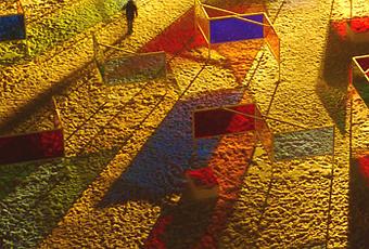 Le net c’est un peu le royaume des objets trouvés : on clique, et voilà, un projet magnifique dont on ne sait, une fois plus, pas grand chose sinon rien. Cette mésaventure balotte est arrivée de nouveau avec Eclats de verre, une installation d’Atomic3. Vous croirez qu’une visite sur leur site nous éclairerait quand à leurs intentions ? J’t'en fout ! désolé de la grossièreté. Tout ce que 5000K peut vous dire après une web-enquête digne de Columbo et Maigret réuni, c’est que l’installation a été présentée à Montréal, dans le cadre de luminothérapie 2012. Pour le reste, what you see is what you get…