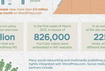 - En mars 2012, WordPress motorise 72,4 millions de sites dans le monde, dont 50% sont hébergés sur wordpress.com.
