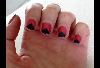 C’est finalement assez simple à réaliser, le secret est, je pense, de bien attendre que le vernis posé en triangle avec le scotch soit parfaitement sec !