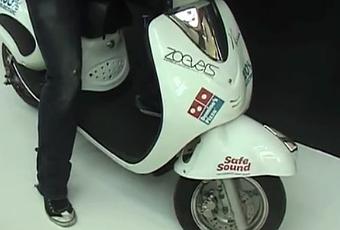 Sécurité oblige, Domino’s Pizza aux Pays-Bas a eu l’ingénieuse idée d’installer sur les scooters électriques des livreurs (dangereusement silencieux), une enceinte diffusant des Safe Sounds brandés par la firme.
