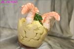 Au moment de servir, dresser l'espuma dans de petits verres à amuses bouches, dresser les crevettes sur le bord des verres.