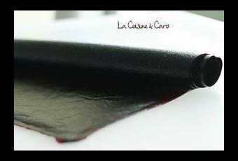 1. Faire chauffer ensemble le coulis de cassis et le sucre, à feu vif pendant 10 minutes. Etaler ensuite sur 2 plaques à pâtisserie couverte de papier sulfurisé.