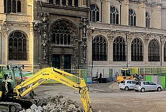 Les Halles, 24 avril. Il y a toujours sur les chantiers, petits ou grands, cet air d'abandon, de solitude, de désolation nostalgique. Un air figé de dimanche après-midi de septembre. Les choses gisent à ciel ouvert dans un état indéterminé de modification entre la destruction et la naissance. Elles ne sont plus, ou pas encore organisées en surfaces destinées à arrêter notre regard, à faire sens. Gravas, ruines, structures ébauchées, fragments, outils, instruments sont poreux, ils se mélangent au monde sans présenter d'objets préhensibles par la pensée. Le chantier c'est "l'ouvert", l'indéterminé, cela ne se dit pas, ne se voit pas. Les choses sont retournées, arrachées comme après une tempête sur une côte, quand les débris marins se mélangent à la terre retournée, aux graines. C'est "l'ouvert" et "le dedans" et aussi "l'intérieur", "l'intime". Mais alors d'où vient cette nostalgie déchirante, cet air de fin du monde et de dimanche après-midi, cette connivence insensée et incommunicable avec les choses, la matière, l'air de la ville? La ville est le grand chantier du sens emporté dans le temps, on construit, on bâti autour de soi le sens comme un sarcophage. Mais la matière même de cette construction est si mystérieuse, si inconnue. Elle nous parle pourtant, elle tente d'éveiller en nous d'autres sens. L'intentionnalité, le rationnel, le parlant ne cessent de déraper, de dérailler en dévoilant des mondes inconnus à nos yeux, les chosent battent follement entre le sens qu'on veut leur imposer et leur être, leur questionnement, leur vibration dans le grain du temps.