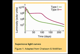 Je vous propose quelques photos ;la premiere vous donne le graphique général de la variation de brillance des deux types de supernovæ possibles , en fonction du temps