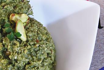 Voici un pesto végétalien qui n'a rien a envier au traditionnel.J'ai utilisé la recette de Crudessence (page 93 du livre) comme base, j'ai simplement remplacé les noix de cajou par des graines de courge. Restons vert !1/2 tasse de pistaches1/3 de tasse de graines de courge1 tasse de basilic frais (tiges comprises ! )1 gousse et demie d'ail1/2 tasse d'huile d'olive1/2 cuillère à café de sel de mer