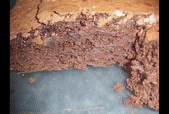 - Dans un moule à brownie en silicone (ou recouvert de papier cuisson), mettre la pâte et faire cuire 25 minutes environ (le gâteau est prêt lorsque le dessus se craquèle).
