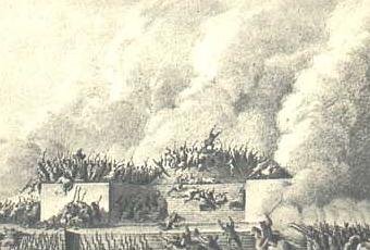 Lors de la Révolution française, la loi du 20 octobre 1789 prévoit son déploiement par la troupe ou la garde nationale pour signaler une intervention imminente, afin de réprimer les émeutes.