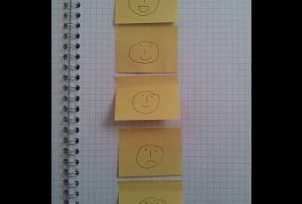 Pour introduire les choses, j’ai donc démarré la réunion sous forme de niko-niko. J’ai distribué des petits post-it sur lesquels j’avais dessiné des visages. Chaque personne avait en main 5 visages, du plus souriant au plus grimaçant, mais ne pouvait en utiliser qu’un pour exprimer son niveau de satisfaction par rapport au déroulement du mois.