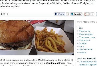 Lorsque Clément et moi avons entendu parler du Camion qui Fume, ce drôle de restaurant itinérant tantôt installé Place de la Madeleine, tantôt porte Maillot, une autre fois au Point Ephémère, nous y sommes allés aussitôt. Nous avons eu la chance de goûter les hamburgers extras préparés par Chef Kristin, Californienne d’origine et Française d’adoption.