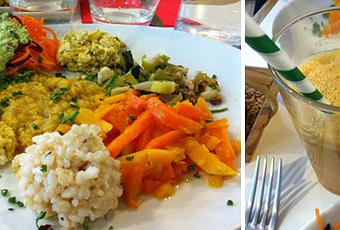 J’ai finalement été ravie de ma découverte. Le plat végétarien du jour se composait d’un assortiment de légumes, de céréales et de tofu, fort bien préparé.