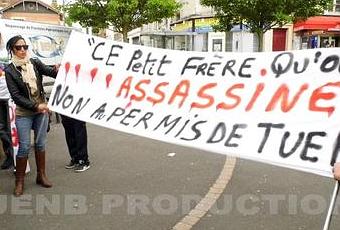 Amal Bentounsi, soeur du jeune homme qui a été inhumé mercredi dans le carré Musulman d'un cimetière de Meaux dont il était originaire, n'a cesse depuis le drame de réhabiliter la mémoire de son frère et de réclamer justice. Arrivée vers 18h15 hier à Noisy-le-Sec, la jeune femme a déclaré aux journalistes : " Je n'appelle pas à la vengeance, mais nous réclamons la justice. C'est une marche blanche pour dénoncer toutes les bavures policières ". Tenant une banderole sur laquelle on pouvait lire " Ce petit frère qu'on assassine. Non au permis de Tuer " (photo ci-dessous), la jeune femme dénonce devant les médias : " Tous les jours, il y a des flics qui jouent les cow-boys. J'ai envie qu'on dise stop aux bavures et non au permis de tuer que les syndicats de police réclament ", répondant ainsi à la réforme de la légitime défense réclamée depuis les faits par la base des fonctionnaires de police lors de manifestations spontannées à travers toute la France, prenant de court ainsi leurs syndicats professionnels.