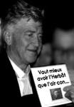 Dans cette époque, où le mot culte est employé à toutes les sauces pour des films de seconde zone voire des navets, David Lynch est-il un maître du cinéma ? En tout cas c’est un réalisateur majeur du 7ème art. Réalisateur, auteur, peintre, illustrateur de BD ; on ne peut pas rester insensible à son oeuvre mêlant l’étrange, le bizarre, le malaise ou la poésie. Nous emportant dans ses univers contrastés, colorés (Blue Velvet le bleu, Sailor et Lula et Twin Peaks le rouge, Lost Hightway le jaune) et du Noir et Blanc (Eraserhead, Elephant Man). Oui, David Lynch est un maître.