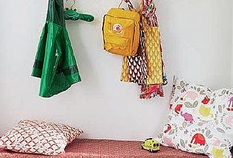Chez moi dans mon entrée ; il y a une poussette, des jouets qui s'égarent, des chaussures (crottées, homme de chantier oblige ), un joli porte-manteau