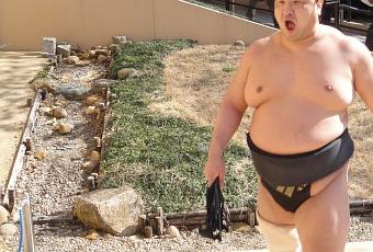 Premiere experience des sumotoris lors d une demonstration de Sumos au temple Yasukuni, pres d Iidabashi.
