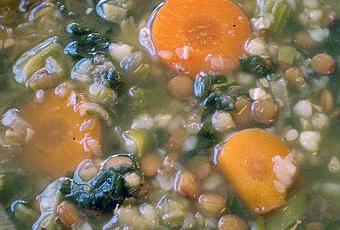 - 1 tasse de sarrasin entier (ou: orge perlé, petites pâtes, riz, patates cubées, etc)