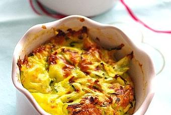 500 g de petites courgettes, 250 g de fromage frais type ricotta, petit Billy..., 3 oeufs, 50 g de parmesan râpé, 1 cuil à soupe de Maïzena, 20 g de beurre, 3 brins de basilic, sel, poivre.