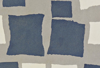 papier mâché peint collé sur papier gris-bleu
