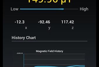 Métal Sniffer utilise le magnétomètre / boussole de votre appareil pour détecter les champs électromagnétiques à proximité. L’application affiche non seulement les composantes X, Y et Z du champ, mais un graphique en direct des parcelles dans la forme d’un diagramme.