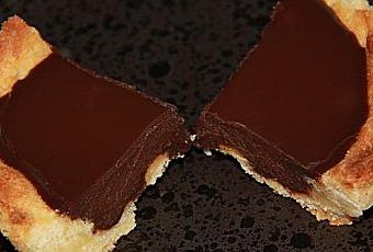 Après avoir retiré les haricots secs, disposer la pâte sablée dans un plat et verser le chocolat