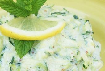 Du coup j’ai ressorti une recette que je n’avais pas fait depuis super longtemps, c’est une de mes amies qui en faisait en été (ouai je sais en ce moment je sort les recette de copines). Des cougettes râpées bien fraiches aux quelles j’ai ajouté de la menthe pour accentuer encore un peu la fraîcheur.