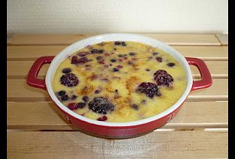 Répartir les fruits dans des cassolettes, verser l'appareil dessus, saupoudrer de sucre vanillé et placer au four chaud position grill pendant 5min (pour faire gratiner).