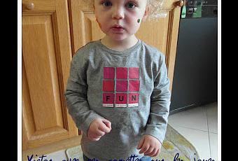 J'ai essayé de nous prendre en photo à trois mais avec le Petidom qui bouge c'est pas facile, je n'ai eu que ses bouclettes. Et j'ai pas eu le courage d'avoir mieux comme photo.