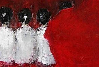Je continue à développer les thèmes qui me sont chers, celui des jeunes filles ou de la foule vue de dessus par exemple, et travaille depuis un an sur une nouvelle série de toiles, qui représentent le corps féminin tatoué. Le tatouage est alors un moyen pour la femme de s’exprimer, de dire ce qu’elle n’exprime pas toujours clairement. Ce sont des caractères chinois juxtaposés, et tous sont imaginés.