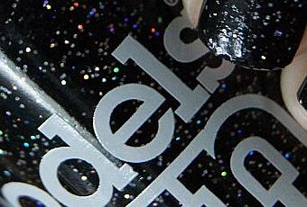 J'ai donc appliqué une couche de vernis noir bien opaque avant de commencer. Niveau application, pas de souci, il glisse tout seul. Mais petit hic (il en faut bien!), je n'ai JAMAIS vu un vernis aussi granuleux de toute ma vie. J'ai du appliquer trois couches de top coat pour avoir un rendu à peu-près lisse (et j'insiste sur l' "à peu-près"). Du coup, il s'abîme vite et, au bout de deux jours, le vernis ne fait plus très clean. Mais bon, les paillettes, en général, c'est le temps d'une soirée ou d'un week-end, donc ça n'est pas très grave.