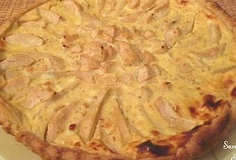 Une tarte aux poires avec une crème parfumée à la vanille et ses grains de sucre demerara!!Ingrédients350gr de pâte feuilletée7 poires1 jus de citron2 oeufs2 c. à s. de poudre d'amande1 c. à s. de vanille2 dl de lait fermenté4 c. à s. de sirop de canneDu sucre demeraraÉplucher les poires, les tailler dans la longueur pour 3/4couper le restant en dés et les mariner dans le sucre de canne et un jus de citron.Dans un bol, fouetter les oeufs, ajouter la vanille et le lait fermenté.Étaler la pâte dans le moule et piquer le fond à la fourchette.Disposer les tranches de poire tout autour du plat et mettre les dés au milieu.Verser la crème et enfourner à four très chaud.Four 220°C pendant 30mn