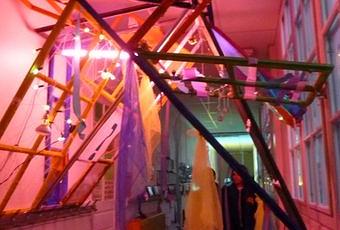 Dans cette étonnante installation, vous trouverez également quelques châteaux plus ou moins éclairés, le tout accompagné d’une ritournelle composée de cris d’oiseaux aigus… Rassurez-vous, je n’étais pas seule dans cet antre mais accompagnée d’une charmante et jeune médiatrice, élève elle aussi ayant grandement participé à la construction de cette belle entreprise avec l’artiste. D’ailleurs une petite brochure vous est distribuée à l’entrée, sachez qu’elle a été conçue par deux classes de l’école !
