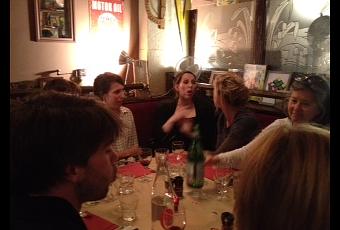 Voilà c’était hier soir que Sylvie Kitchen jouait au Chef dans les cuisines du restaurant « les fils à maman ». Un repas tout simple avec des ingrédients très faciles à avoir dans son frigo : en entrée une tarte fine à l’oignon accompagnée de sa petite salade douce, en plat principal une escalope de poulet caramélisée entourée de grosses frites de carottes et pommes de terre et pour finir un dessert traité façon « café gourmand » composé d’un pot de crème choco/coco, d’une grosse tuile au citron vert et de trois fraises caramélisées…. Bref c’était très sympa et j’ai adoré cette expérience : à refaire ici ou ailleurs ! Donc si vous avez des connections avec des restaurateurs, pensez à Sylvie Kitchen et YQDMF.Bonne journée
