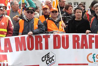 Estelle Grelier, au premier plan, avec les salariés de Pétroplus (photo DR)
