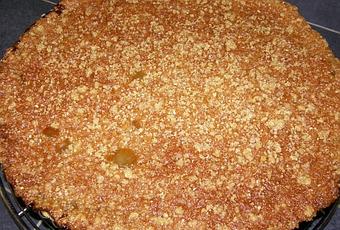 Laissez légèrement refroidir et versez sur votre pâte pré-cuite , ajouter le crumble réservez et mettez au four pour une bonne heure !!