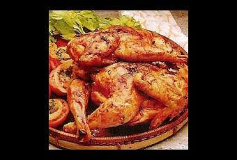 - Cuire les coquelets 30 à 35 mn sur un barbecue de maison ou de jardin. Les retourner de temps en temps et les badigeonner de la préparation chaude. Servir accompagné de tomates grillées au barbecue avec des rondelles d'oignons.