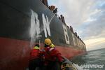 Ouistreham, le 17 mars 2007. Après son interception à 16h 30 par le navire de Greenpeace, l’Arctic Sunrise au large de Ouistreham, le Galina III a tourné dans la zone de pilotage du port avant de prendre le large vers 19h, puis de se mettre à l’encre en baie de seine, vers 22h 30, entre Cherbourg et le Havre, à plus de 20 miles des côtes françaises.