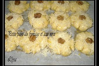 ingrédients 500 gr de farine 100 ml d'huile 1 oeuf 1/2 paquet de levure fraiche (20 gr) 1 c à café rase de sel fin 1 c à soupe de sucre cristallisé de l'eau tiède (je n'ai pas mesuré il faut que la pâte soit bien molle) des noix concassées des cerneaux de noix du gruyère râpé du fromage type vache qui rit ou autre 1 jaune d'oeuf dilué dans un peu de lait pour la dorure préparation mettre dans le bol du robot la farine, l'oeuf, l'huile, le sucre et le sel, faire tourner! diluer la levure dans un peu d'eau à peine tiède et l'ajouter au mélange précédent! faire tourner le robot jusqu'à obtention d'une pâte souple ajouter de l'eau si nécessaire couvrir la pâte et laisser gonfler, la pâte doublera de volume! Rompre la pâte et former des petites boules! Les aplatir et mettre au creux de chaque