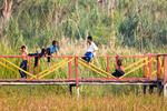 Ici les papillons, les calaos, les grenouilles, les geckos et les enfants prenaient ensemble le temps de l’insouciance, le temps des rires, le temps du temps. Chaque jour les gens du village empruntaient ce ponton rafistolé au-dessus du lac. Selon l’heure, on voyait passer les grands-mères avec du linge, les pêcheurs avec leurs filets, des jeunes filles sages sous des ombrelles et des adolescents un peu plus remuants, surtout l’après-midi à la sortie des classes. Le ponton tenait par la grâce d’Allah et entre ses planches vermoulues grimpaient les roseaux. Et pourtant toutes les personnes l’empruntaient avec la même assurance, semblant presque danser dessus. Le confort est aussi une question d’habitude.