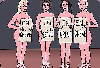Enfin, les danseuses étaient en grève car elles ont eu gain de cause en obtenant une augmentation de 15 % de leur salaire. Elles ont donc repris le "travail" le 17 mai au soir. C'est sur que cette grève a du faire des mécontents. En tout cas, si parmis le public représenté dans le dessin vous reconnaissez une personnalité du monde politique, ce n'est que pure coïncidence !