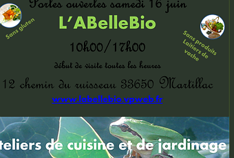 la journée portes ouvertes de L’ABelleBio qui aura lieu le 16 juin. Visite du jardin et des installations, toilettes sèches, compostage, ruches etc….des réalisations grandeur nature