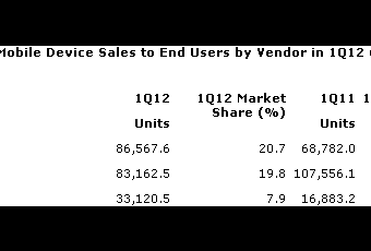 Il ne s'est vendu "que" 419 millions de mobiles au premier trimestre 2012 contre 427 millions au premier trimestre 2011, soit un recul de 2%.