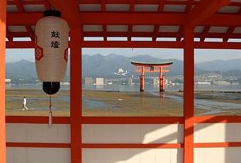 Dans la quiètude du petit matin, visite de l'Itskujima-jinja, sanctuaire dédié à trois déesses de la Mer, filles du dieu shintoïste Susanoo, qui aurait été fondé en 593 et pris sa forme définitive en 1168, vers la fin de l'époque Heian. Cantonné d'élégants corridors couverts, le sanctuaire est réputé pour ses toits de chaume pentus et la couleur orange vif de sa charpente, remarquable exemple de l'architecture des sancturaires de l'époque Heian.