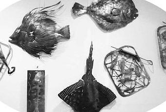 Le nouvel arrivage de Nadine Delourmel artiste rennaise ce week-end aux Quat'Sardines, des mises en boites et des découpes, des effets positifs/négatifs, des pièces ajourées à suspendre à la lumière, un travail féminin tout en délicatesse. Quand Nadine oeuvre dans l'intimité de son atelier, un autre artiste utilise l'espace d'un hangar. Il lui faut un pont roulant une grue un camion un quai... c'est Marc Morvan ! le quimpérois était présent sur la fête Rêvoport, on a suivi le montage du Thon, le poisson géant de Concarneau.